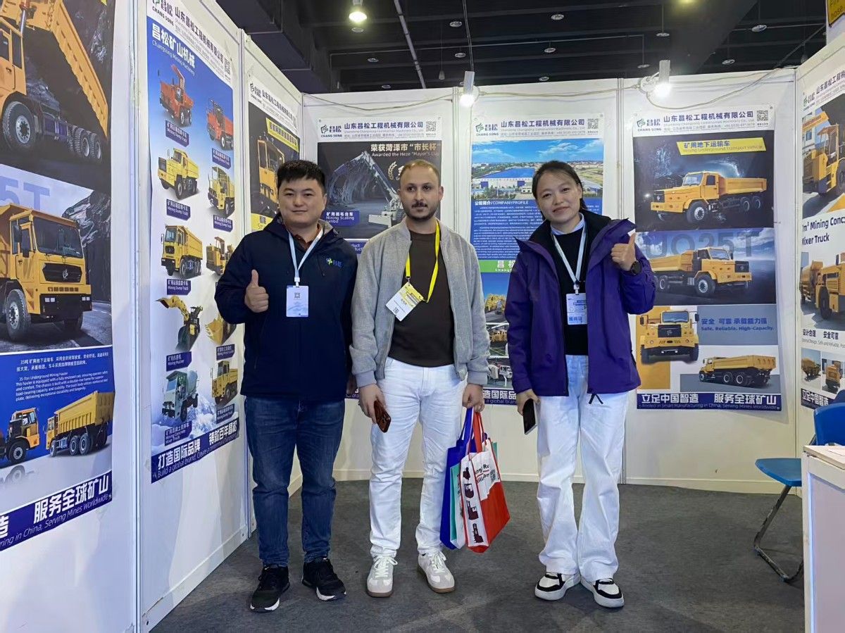 展會現(xiàn)場超熱鬧,山東昌松工程機械的展位前,中外客戶都來點贊。背景里的產(chǎn)品海報特吸睛,展示的工程機械性能強、技術新。